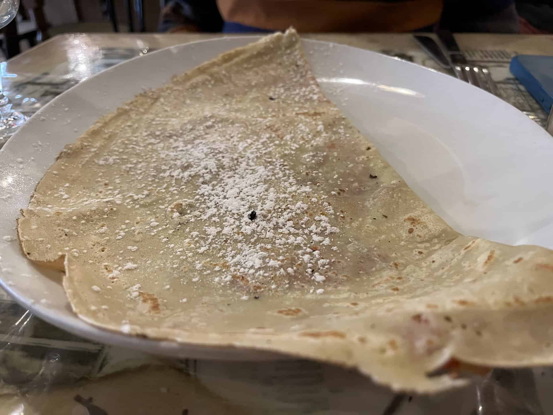 That’s because the restaurant had a stand on the street outside and served crepes to the pedestrians.