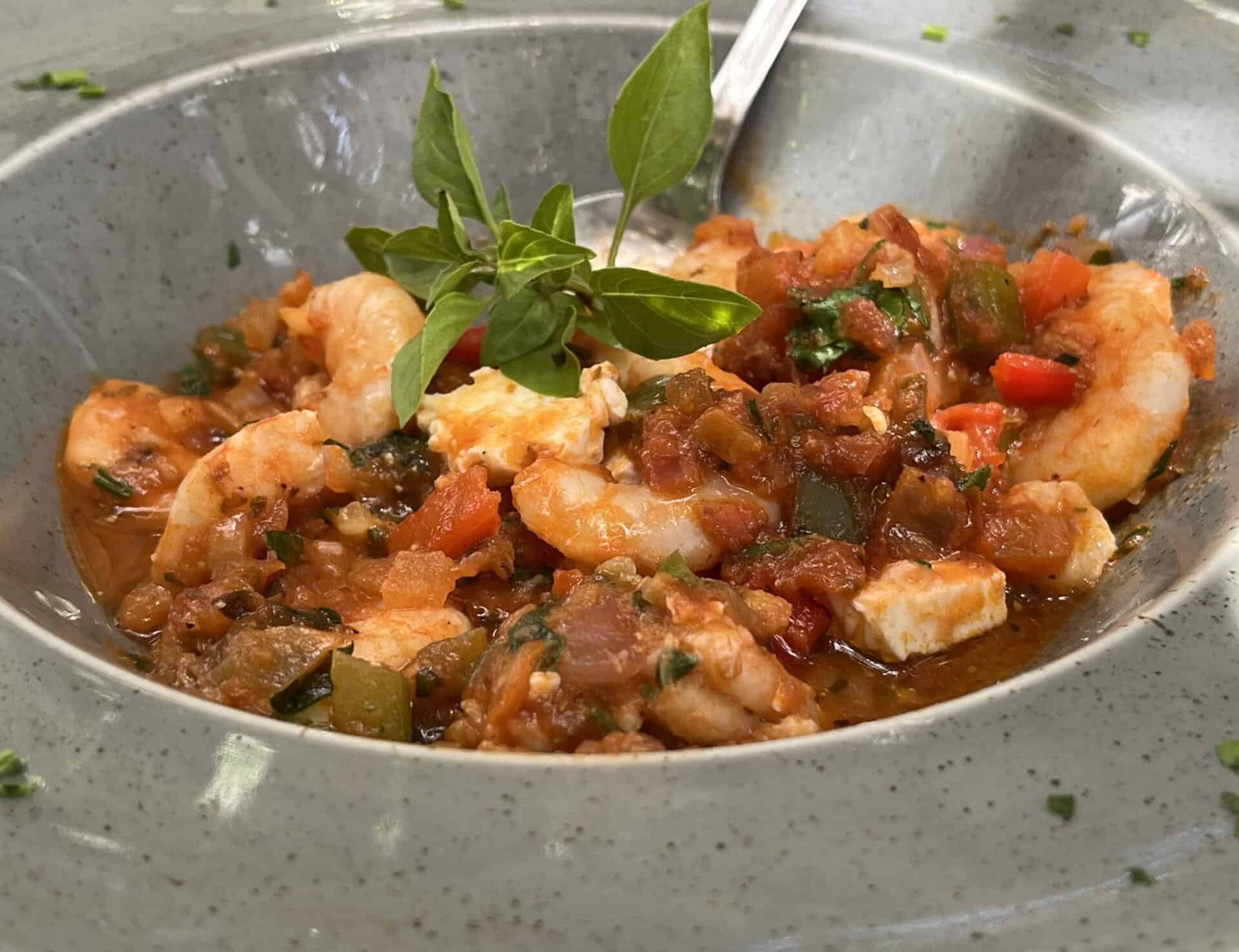 ギリシャのクレタ島、アギオス・ニコラオスのシーフード・レストラン、Pelagos の海老のサガナキ
