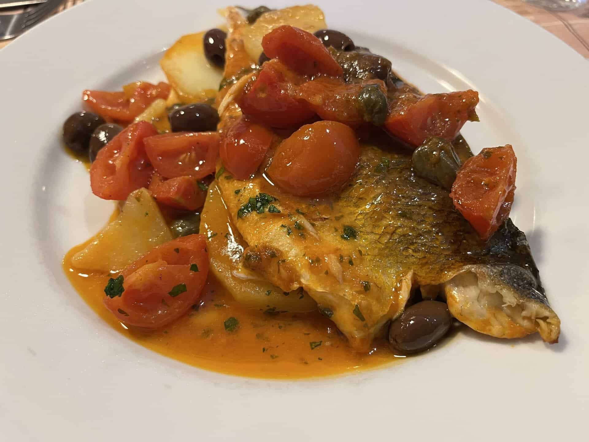 北イタリア、サンタ・マルゲリータ・リグレのレストラン、Trattoria Da Pazzi のスズキ料理
