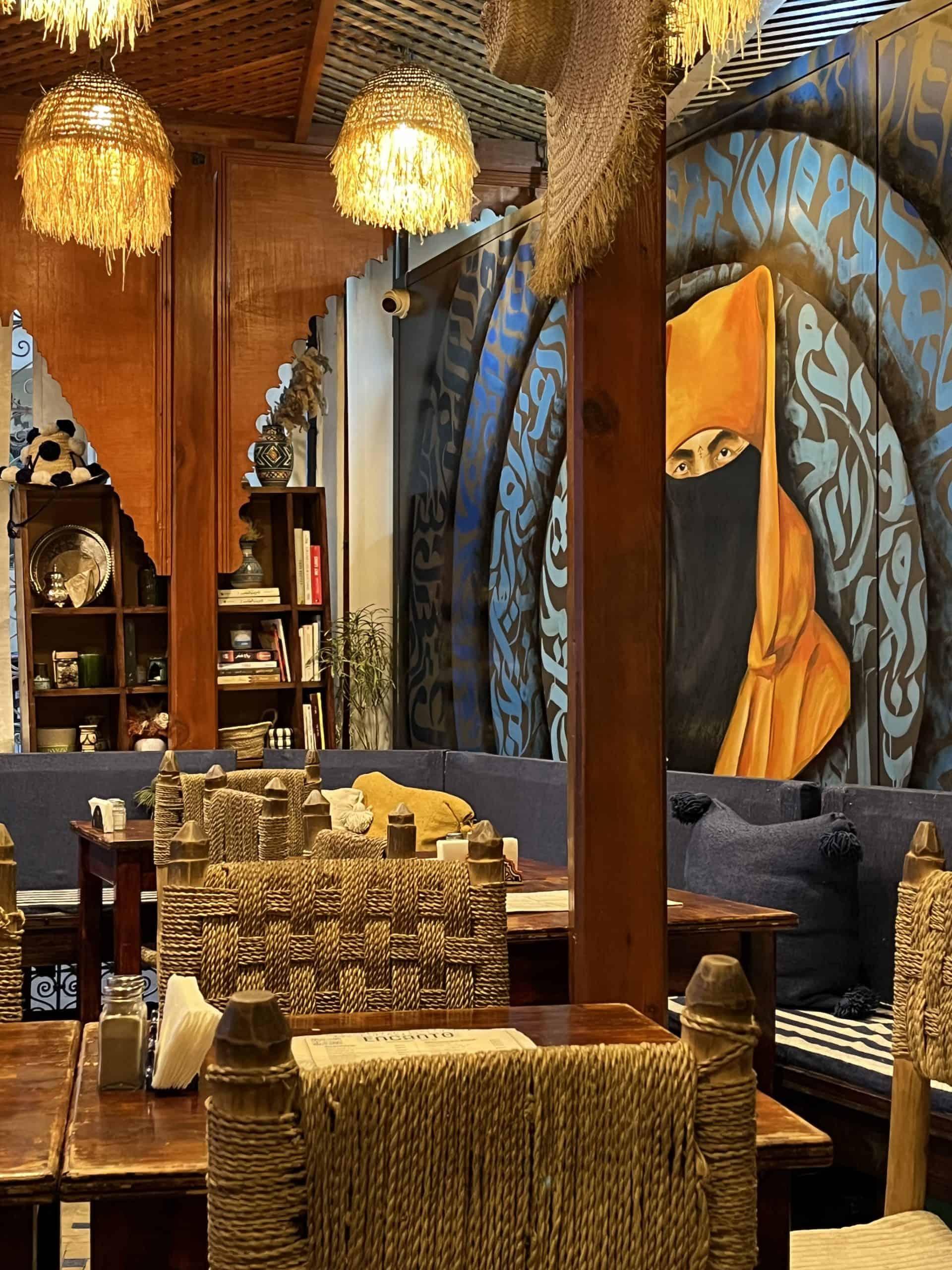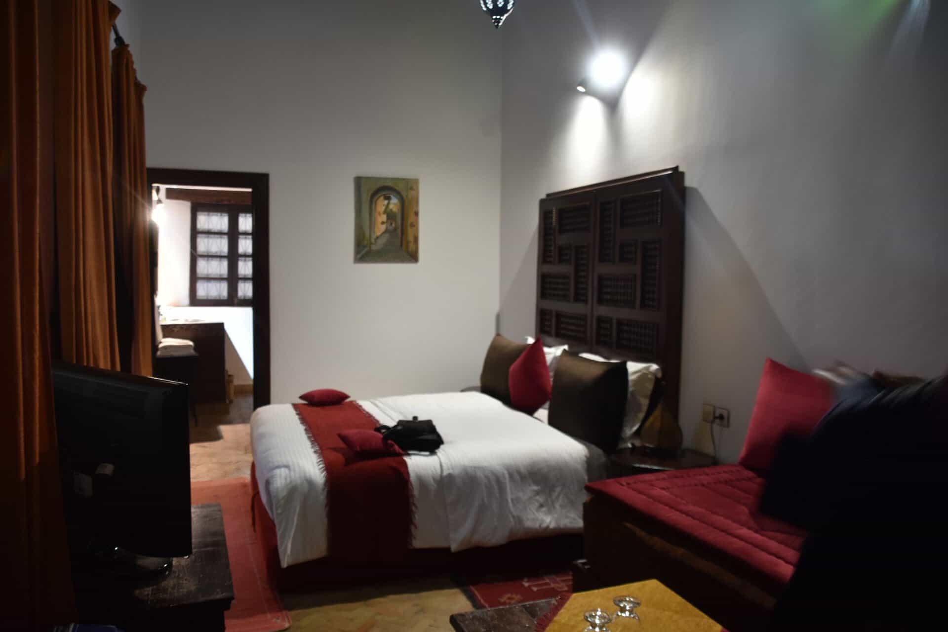 Riad Ahlam というところで、前夜のシャウエンのリヤドが複雑な迷路のような建物だったのに対し、こちらは屋根付きの中庭を囲んで部屋が並んでいるシンプルな造りのようでした。